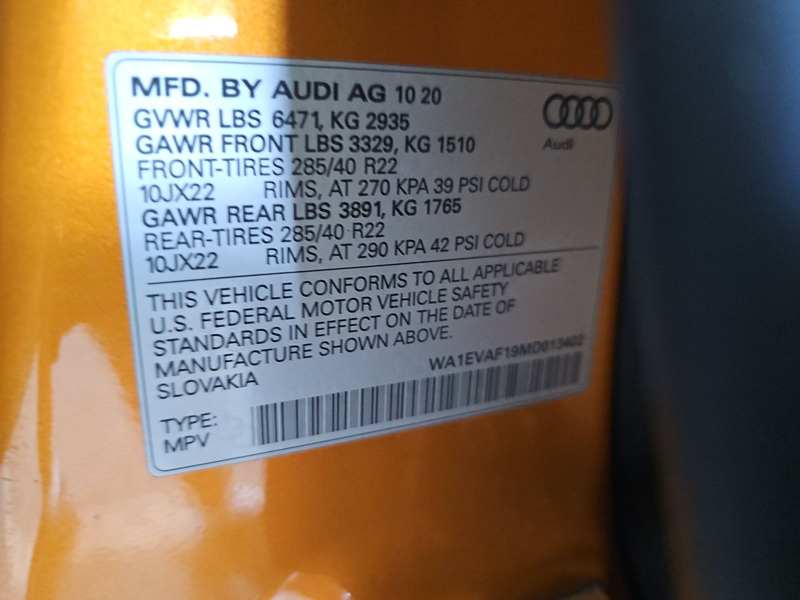 - WA1EVAF19MD013402